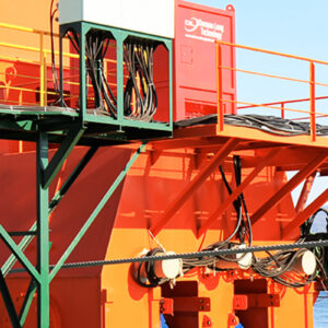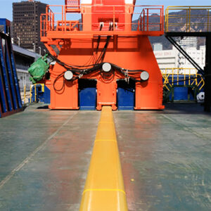 この「洋翔」は長さ120m、幅44m、深さ7mで4000トンの物を吊上げることが出来る、日本では初めてのジブスライド格納式を採用した大型起重機船です。(ジブスライド格納により船の重心を下げ強風時の航行の安定が保たれるそうです)