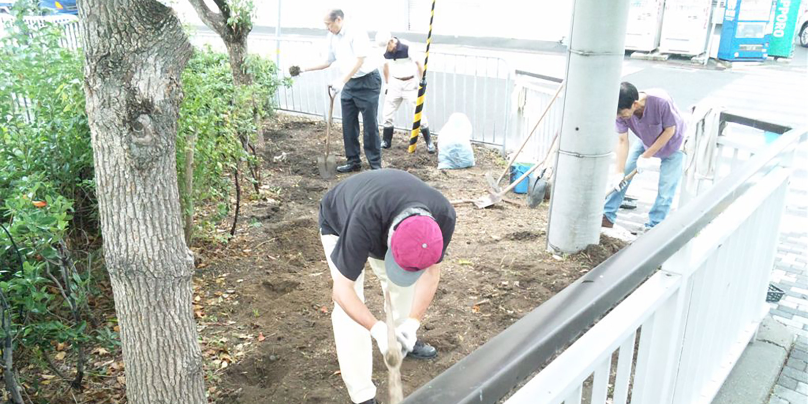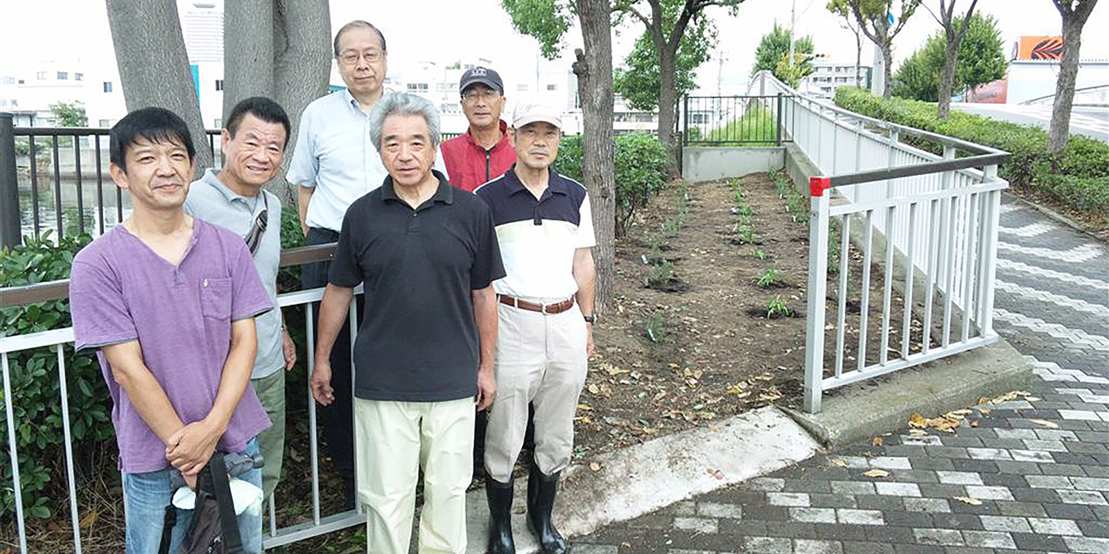 今迄清盛橋南東側(約40㎡)と南西側(約70㎡)には、花の咲かない低木が植えられていましたが、そこに缶、瓶、ペットボトル、時には古雑誌、段ボールなどが投げ込まれ非常に見苦しい状態を呈していました。 当会や地元の自治会が年数回清掃活動を行っていますが、この植え込みには中に人が入れないように柵がしてあり、清掃活動の時は外から手の届く範囲のゴミしか回収できず、奥に入ってしまったゴミは回収できず溜まる一方でしたので、管理者である神戸港管理事務所や中部建設事務所と相談して、今年の初め頃に柵の一部を切り取ってもらって中に人が入れるようにしてもらい、それと同時に低木もほんの少しを残して大半を刈り取ってもらい、そこを市民花壇にしようという事で地元自治会とも話し合ってきましたが、問題は近くに水道がないため水やりに困るということで市民花壇の話はしばらくそのままになっていました。