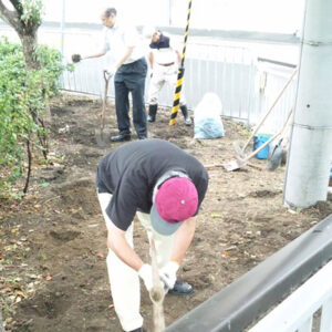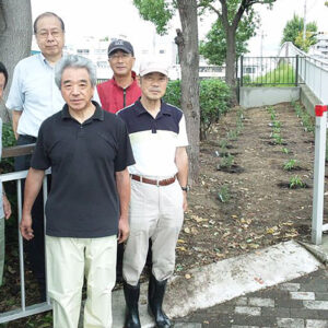 今迄清盛橋南東側(約40㎡)と南西側(約70㎡)には、花の咲かない低木が植えられていましたが、そこに缶、瓶、ペットボトル、時には古雑誌、段ボールなどが投げ込まれ非常に見苦しい状態を呈していました。 当会や地元の自治会が年数回清掃活動を行っていますが、この植え込みには中に人が入れないように柵がしてあり、清掃活動の時は外から手の届く範囲のゴミしか回収できず、奥に入ってしまったゴミは回収できず溜まる一方でしたので、管理者である神戸港管理事務所や中部建設事務所と相談して、今年の初め頃に柵の一部を切り取ってもらって中に人が入れるようにしてもらい、それと同時に低木もほんの少しを残して大半を刈り取ってもらい、そこを市民花壇にしようという事で地元自治会とも話し合ってきましたが、問題は近くに水道がないため水やりに困るということで市民花壇の話はしばらくそのままになっていました。