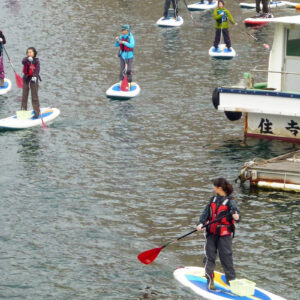 12月8日に、 West Japan Outdoor Schoolの関口さんのグループが、パドルボードのシーズンの終わりを締めくくって海上清掃をすると言うのででかけました。