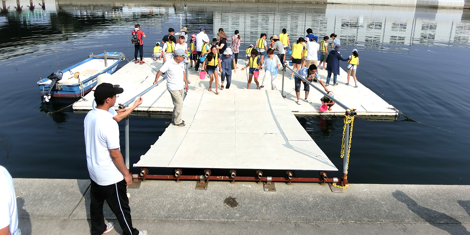 当会会員の「兵庫運河・真珠貝プロジェクト」の夏休み自由研究会が8月9日に開催されました。 2015.08.09イベント行事 当会会員の「兵庫運河・真珠貝プロジェクト」の夏休み自由研究会が8月9日に開催されましたので当会もお手伝いをして来ました。 当日は朝から天気も良く、多くの子供たちと保護者の方が参加され盛大な催しになりました。 まず最初に真珠貝Pの道林会長が兵庫運河の歴史や生物について全体レクチャーを行なった後に兵庫漁業協同組合様の協力で、ヒラメ100匹を子供たちが兵庫運河へ放流しました。 その後は漁船に乗り込み、兵庫運河内や神戸港外から見た和田岬の地形等を観察しました。 兵庫運河を美しくする会 会長 山下邦人 活動報告一覧 Share RSS イベント行事コメント: 0