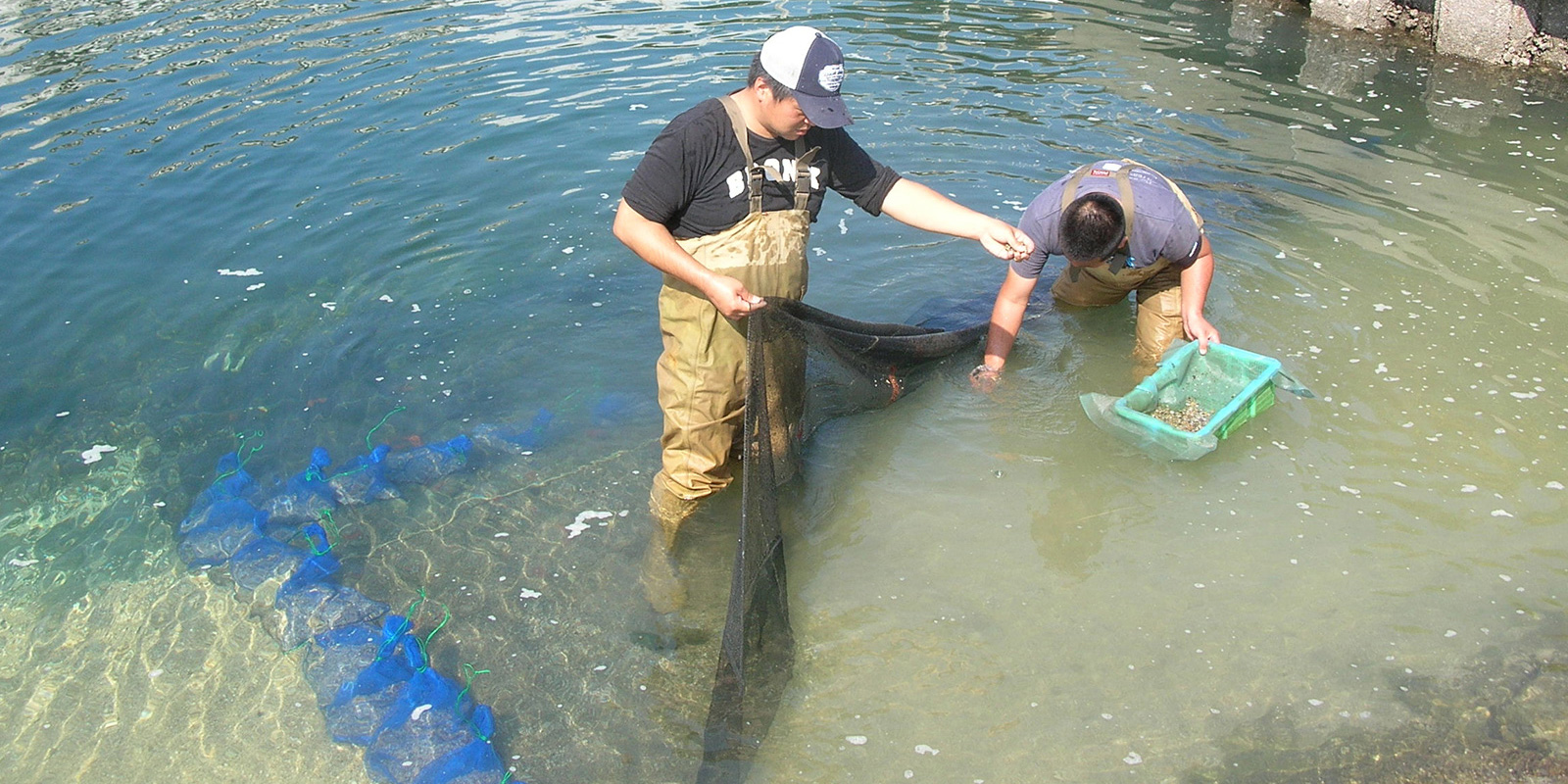 10月21日に材木橋東側のアサリ育成実験場で、砂利を入れ、ケアシルをまきました。 2015.10.21イベント行事 10月21日に材木橋東側のアサリ育成実験場で、ひょうごの生物多様性保全プロジェクトの一環として、兵庫漁業協同組合糸谷組合長、水産研究会4名、神戸水辺ネットワーク2名、兵庫運河を美しくする会1名で、砂利を入れ、ケアシルをまきました。 アサリを外敵から守るネットを被せ、アサリの稚貝(10mm未満)15,000匹とキジハタ(アコウ)の稚魚(生後3ヶ月)300匹も放流しました。 先日移植したアマモも何とか定着し、その近くをキジハタの稚魚が元気よく泳いでいました。 市民の皆様が成長するのを温かく見守ってほしいですね。 兵庫運河を美しくする会 服部副会長 活動報告一覧 Share RSS イベント行事コメント: 0
