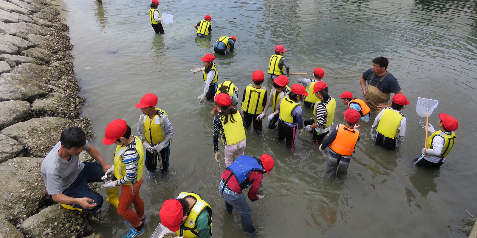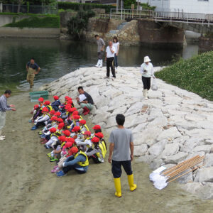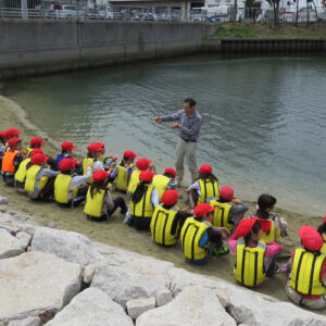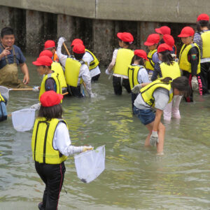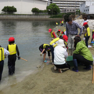 兵庫運河沿いの浜山小学校の3年生を対象に環境学習会が始まりました。 2016.06.01イベント行事 兵庫運河沿いの浜山小学校の3年生を対象に環境学習会が始まりました。 今年より浜山小学校と兵庫漁協組合を中心に「兵庫運河を再生するプロジェクト」のメンバーで3年生33名を対象に環境学習会の1回目を6月1日に実施しました。 1時限目は校内で運河の生きものについて昨年作製した図鑑を見ながらレクチャーを行い2時限目からは兵庫運河材木橋東側の砂浜にて観察会を実施しました。 当日、兵庫県・神戸市のレッドリスト種のアカテガニが兵庫運河で初めて確認されました。 兵庫運河では、昨年の調査から現在まで16種類の絶滅危惧種が確認しています。 また、子供たちの父兄の方も見学に来られて今後も継続して環境学習を希望されていました。 今回、確認出来ました生きものは下記の通りです。 ・魚類・・・アナハゼ、タケノコメバル、ボラ ・甲殻類・・・アカテガニ、スジエビモドキ、ユビナガホンヤドカリ、ケアシホンヤドカリ、ケフサイソガニ、タカノケフサイソガニ、ワレカラsp、ヨコエビsp ・貝類・・・アサリ、ホソウミニナ、マガキ、ケガキ、コシダカガンガラ、レイシ、スガイ、カリガネエガイ、アラムシロ、タマキビ、アカニシ卵 ・その他・・・イソギンチャクsp 、フナムシ 兵庫運河を美しくする会 会長 山下邦人 活動報告一覧 Share RSS イベント行事コメント: 0