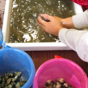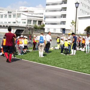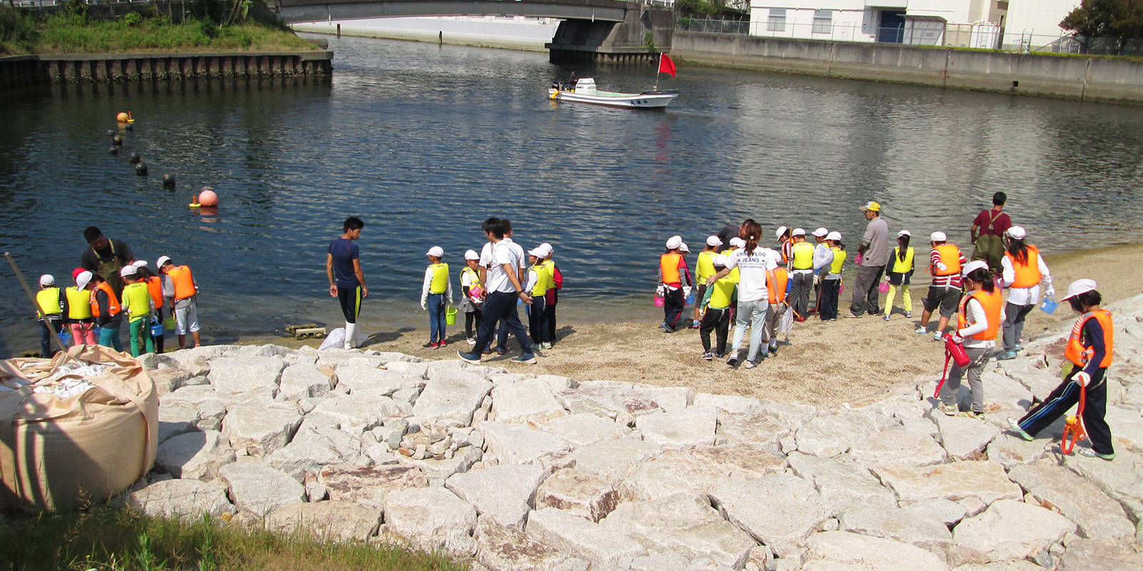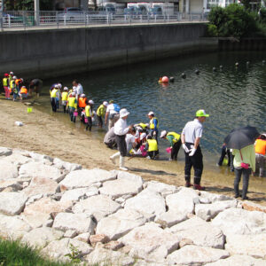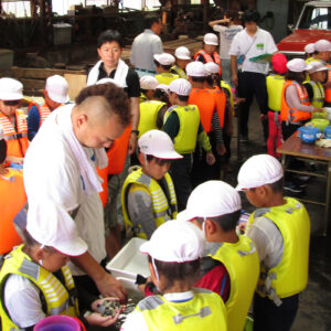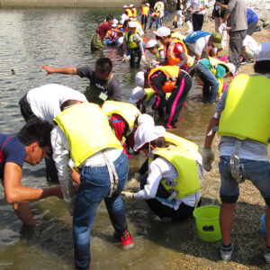 今年も浜山小学校の環境学習が実施されました 2017.07.19イベント行事 7月19日に神戸市立浜山小学校3年生を対象に昨年同様に環境学習として兵庫運河にてアサリの育成実験を実施しました。 当日は、兵庫漁協を中心とした「兵庫運河の自然を再生するプロジェクト」のメンバーと 学校関係者、PTAの父兄の方などが多くの方が見守る中、兵庫運河の育成実験場に行き、6班に分かれ班ごとにアサリ20個体の殻長重量を測定した後に砂浜にアサリ袋を設置しました。 また、生徒全員はライフジャケットを着用して兵庫漁協の監視船が見守る中、運河の生きものの観察会も同時に実施しました。 アサリの育成の状況は11月頃に子供たちに引き上げてもらい成長具合を確認する予定です。 兵庫運河を美しくする会 会長 山下邦人 活動報告一覧 Share RSS イベント行事コメント: 0