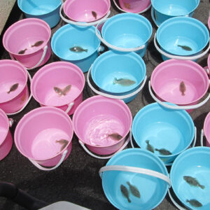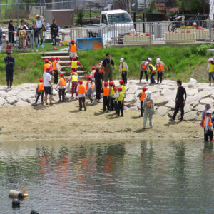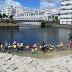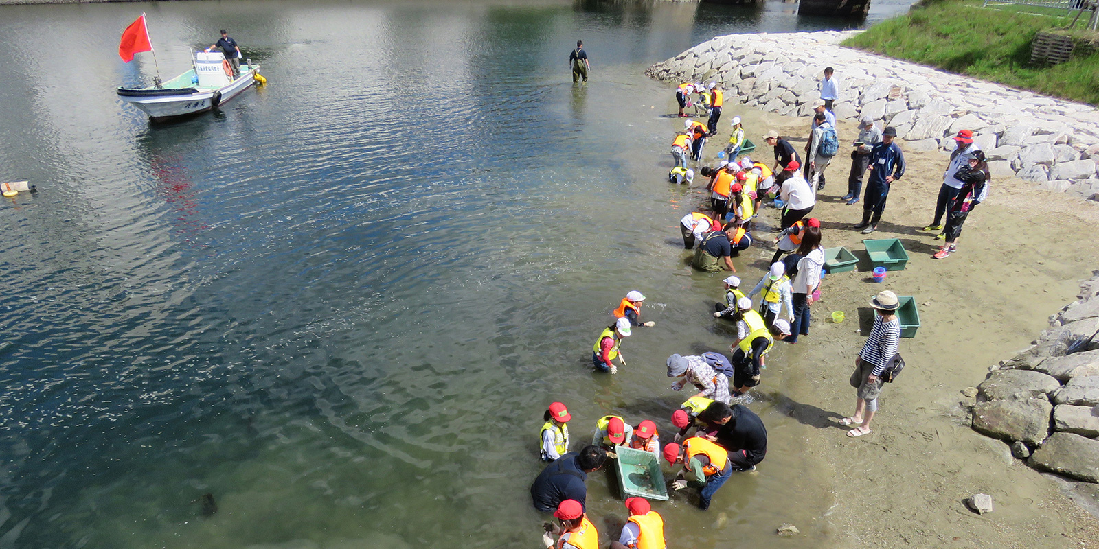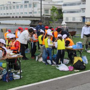 浜山小学校環境学習! 2018.06.13イベント行事 6月13日に神戸市立浜山小学校3年生を対象に平成28年から兵庫漁業協同組合様が中心となって実施している環境学習が実施されました。 今回も兵庫運河も砂浜でアサリの育成実験と運河の生物の観察会も同時に実施されました。 当日は、兵庫漁協を中心とした「兵庫運河の自然を再生するプロジェクト」のメンバーと学校関係者、行政関係者、PTAの父兄の方などが多くの方が見守る中、39名の3年生が6班に分かれ、班ごとにアサリ20個体の殻長・重量を測定した後に砂浜にアサリ袋を設置しました。 また、生徒全員はライフジャケットを着用して多くの関係者や兵庫漁協の監視船が見守る中、運河の生きものの観察会も同時に実施しました。 アサリの育成の状況は11月頃に子供たちに引き上げてもらい成長具合を確認する予定です。 今回もヒラメの稚魚を放流しましたが子供たちは大喜びでした。 この模様は、6月14日の神戸新聞朝刊に載りました。 兵庫運河を美しくする会 会長 山下邦人 活動報告一覧 Share RSS イベント行事コメント: 0