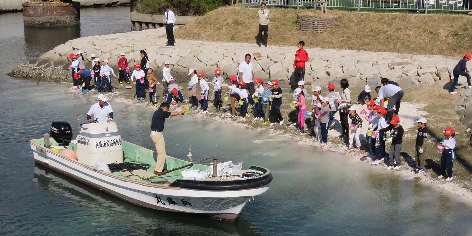 神戸市立浜山小学校の環境学習(アサリ育成実験)! 2018.11.07イベント行事 11月7日に浜山小学校3年生の環境学習に参加して来ました。 3年連続で兵庫漁業協同組合の水産研究会の方々が指導者になり6月に運河にアサリ袋に入れた貝を校内で取り出し、殻長・重量を6班に分かれて計測しました。 計測後は、各班で記録を作成し結果発表も行いました。 大きく育ったアサリもいましたが、なかにはアサリが全滅していた袋もありました。 発表後には、材木橋の砂浜にアサリを放流し、先月の27日にも行なった牡蠣殻の散布も行いました。 当日は、大阪湾フェニックスセンターの方や神戸市・兵庫区役所の行政関係者や父兄の保護者の方々も一緒に環境学習を見学されました。 兵庫運河を美しくする会 会長 山下邦人 活動報告一覧 Share RSS イベント行事コメント: 0