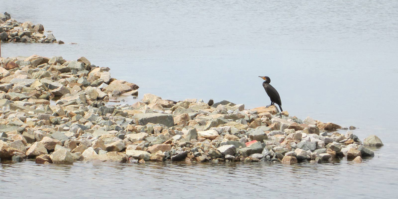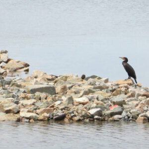 9月25日に 浜山プロムナード人工砂浜の工事現場に工事の進行状況を見に行った際に工事現場の埋め立て地にカワウとアオサギがいました(上手く撮れていませんが)