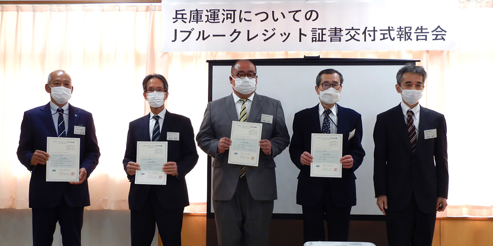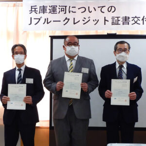 兵庫運河についてのJブルークレジット証書交付式報告会が行われました。 2022.03.28イベント行事 兵庫運河についてのJブルークレジット証書交付式報告会が令和4年3月28日14時より神戸市立浜山小学校でおこなわれました。 プロジェクト名『兵庫運河の藻場・干潟と生きもの生息場づくり』 創出者 兵庫漁業協同組合 兵庫運河を美しくする会 神戸市立浜山小学校 兵庫・水辺ネットワーク 兵庫運河において、藻場造成、水質浄化、環境美化、環境学習などに取り組んでいます。 移植したアマモは『あつまれ生き物の浜』『材木橋浜っ子きらきらビーチ』付近で繁茂しており、令和3年12月にはアマモなどによるCO2吸収量が『Jブルークレジット』として、クレジット認証されました。このクレジットについては兵庫運河プロジェクトに賛同していただいた、15企業様と取引が行われました。 兵庫運河を美しくする会 会長 服部鋭治 活動報告一覧 Share RSS イベント行事コメント: 0