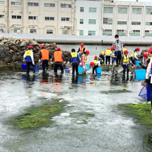 兵庫運河の自然を再生するプロジェクト主催による、浜山小学校前あつ浜調査(大阪湾一斉調査の一環)が6月16日行われました。