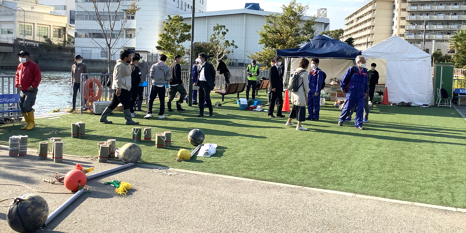 11月8,9日 第5回兵庫運河24時間調査が8日10時より、きらきらビーチをベースに水中ドローンなども使って、兵庫運河の水質、流れ、生き物分布調査が、徳島大学、大阪公立大学高専、神戸高専、灘高校、みなと総研、総合水研、兵庫漁協、兵庫運河を美しくする会、他多数の人たちの協力で行なわれました。