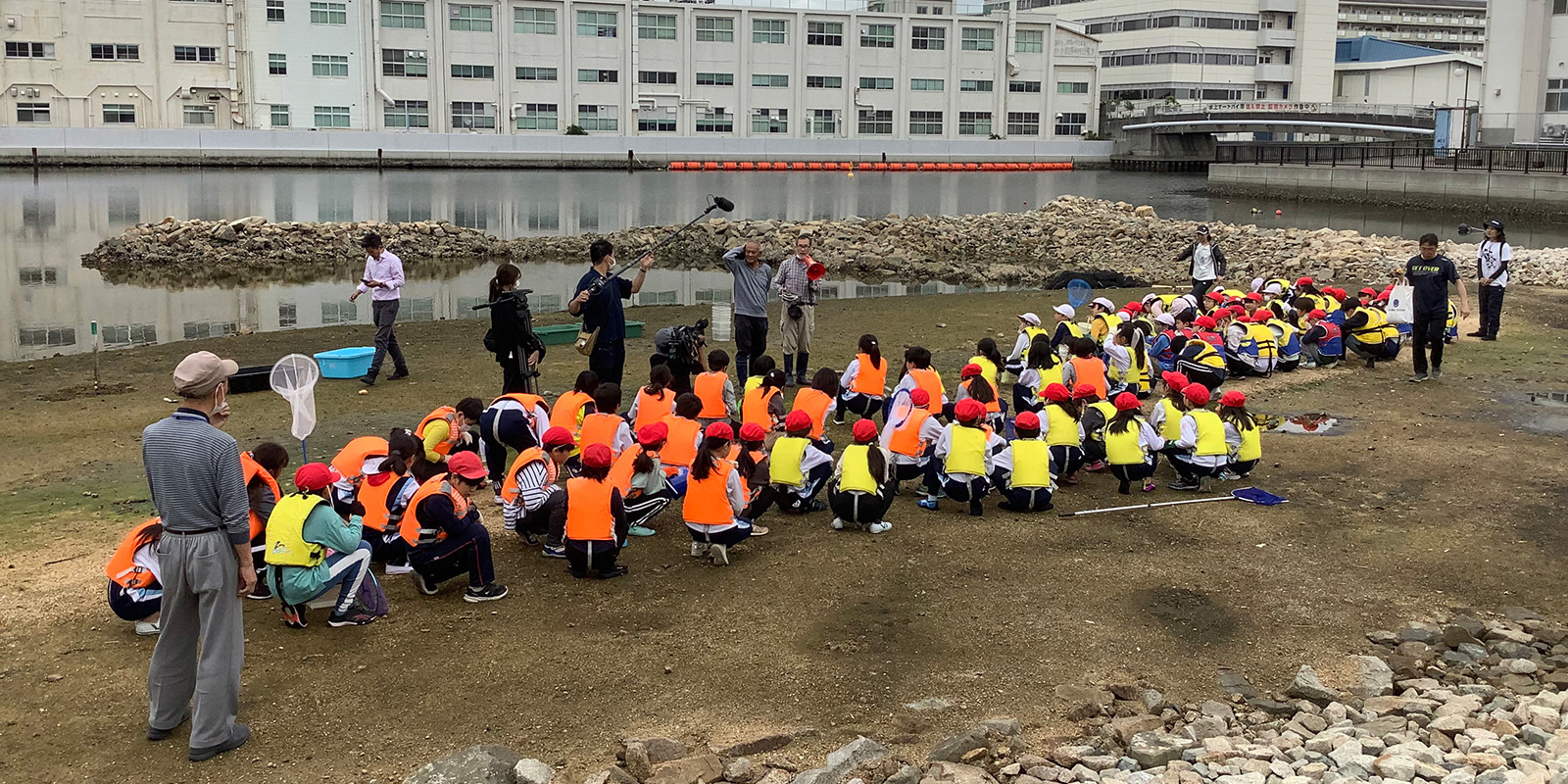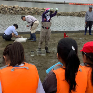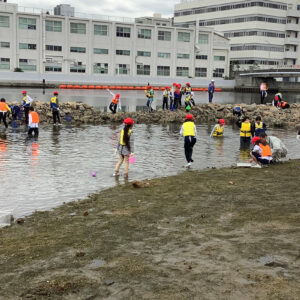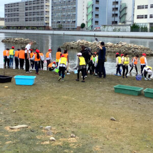 小学生参加型大阪湾一斉調査が行われました。 2023.06.01イベント行事 2023年6月1日 兵庫運河の自然を再生するプロジェクト主催による、小学生参加型大阪湾一斉調査が、浜山小学校前のアツ浜干潟で10時50分より12時過ぎまで、浜山小学校3年生25名、4年生45名、5年生26名、合計96名の生徒さん達がライフジャケットを身に着けて、水辺ネットの講師4名による観察会が兵庫漁協の協力のもと、行われました。 今回の調査では、貝類30種、魚類5種、カニ、海藻類も多く採取できました。 回を増すごとに種類が増え、兵庫運河が生物にとって良い棲み処になって来ていることが実感出来ました。 兵庫運河を美しくする会 会長 服部鋭治 活動報告一覧 Share RSS イベント行事コメント: 0