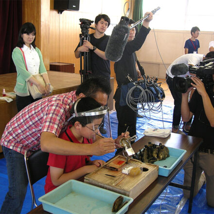 『兵庫運河・真珠貝プロジェクト』の移植式が兵庫工業高校で開催されました。
